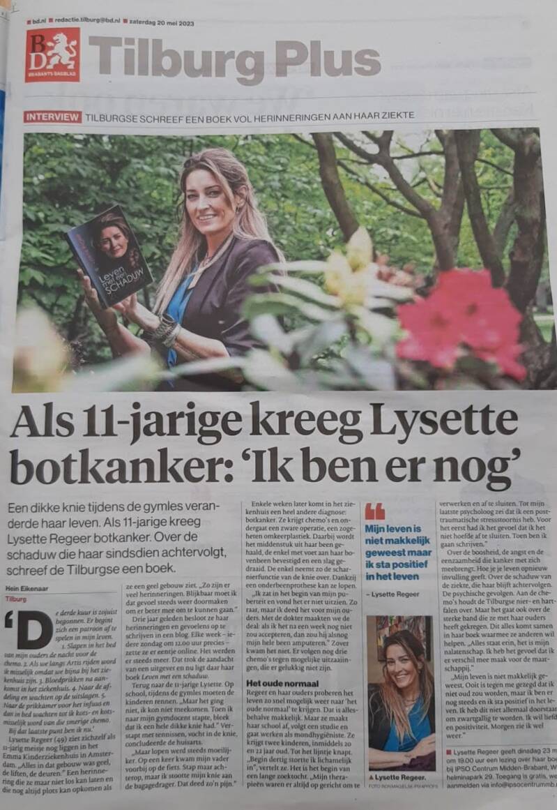 TILBURG - Een dikke knie tijdens de gymles veranderde haar leven. Als 11-jarige kreeg Lysette Regeer botkanker. Over de schaduw die haar sindsdien achtervolgt, schreef de Tilburgse een boek waarmee ze anderen wil helpen. Rauw en eerlijk van toon. Droevig en positief. ,,Zo is de realiteit.”